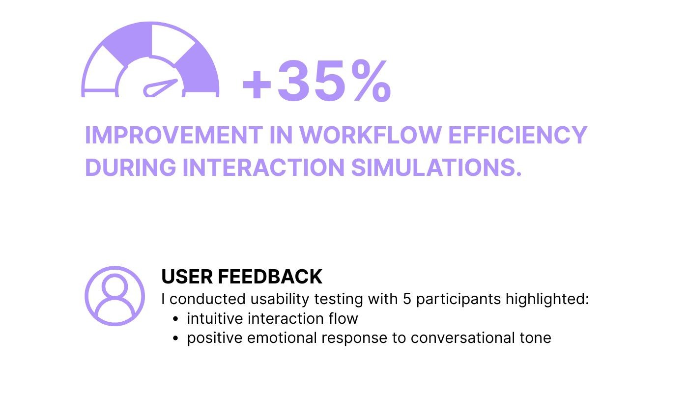 The final outcome is a conversational interface prototype combining AI automation, strategic microcopy, and a scalable design structure ready for multi-channel integration (Instagram, WhatsApp Business API, and email automation).