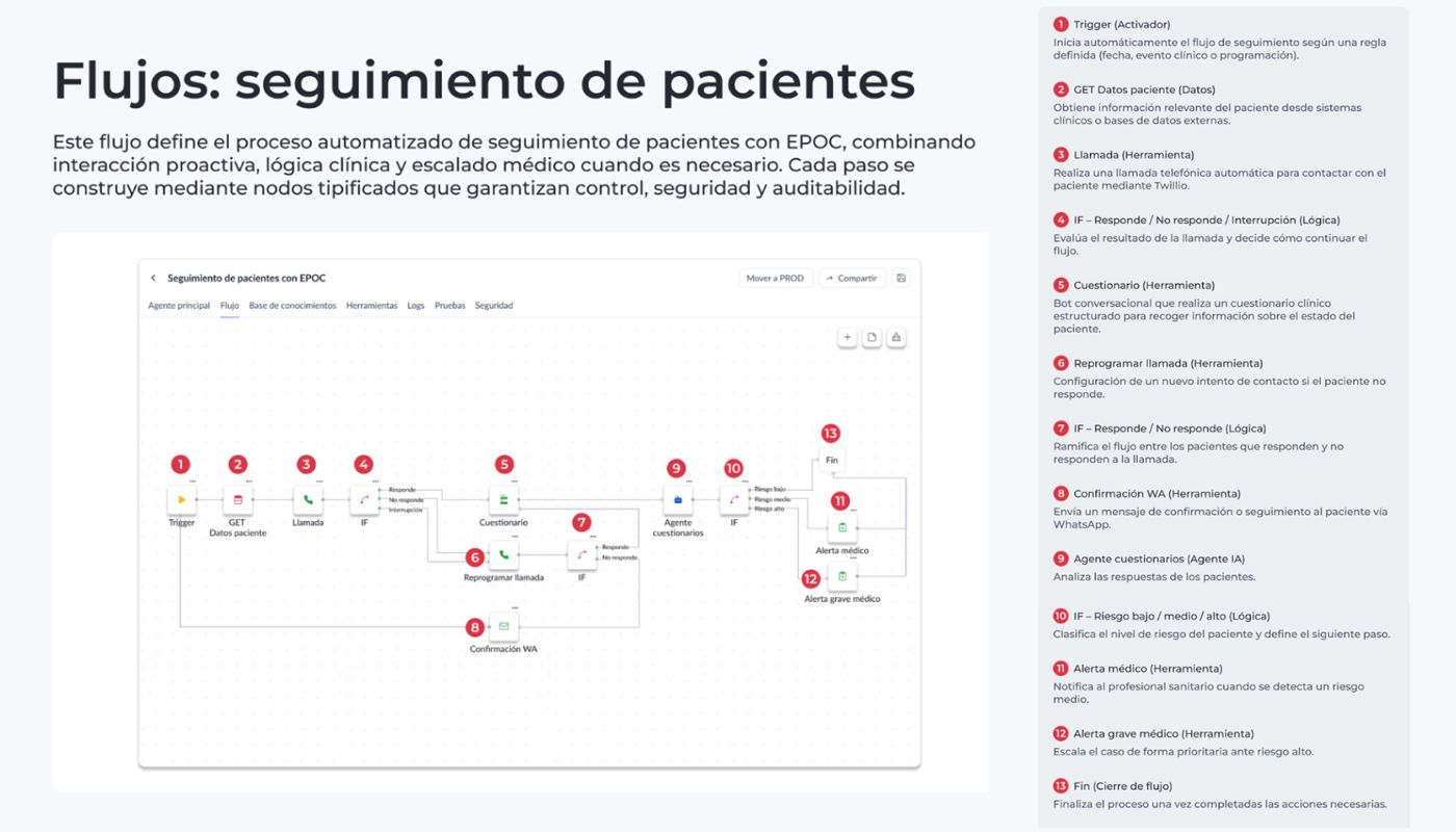 Healthcare organizations face massive administrative overhead and information fragmentation. The goal was to build a secure, interoperable platform that allows non-technical medical staff to manage AI-driven patient interactions while maintaining 100% clinical safety.